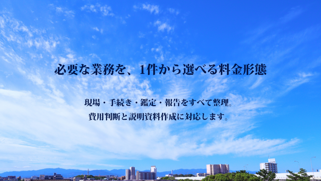 そのため、相談 → 現場対応 → 鑑定 → 申請・提出 → 原状回復 → 引き渡しまで、